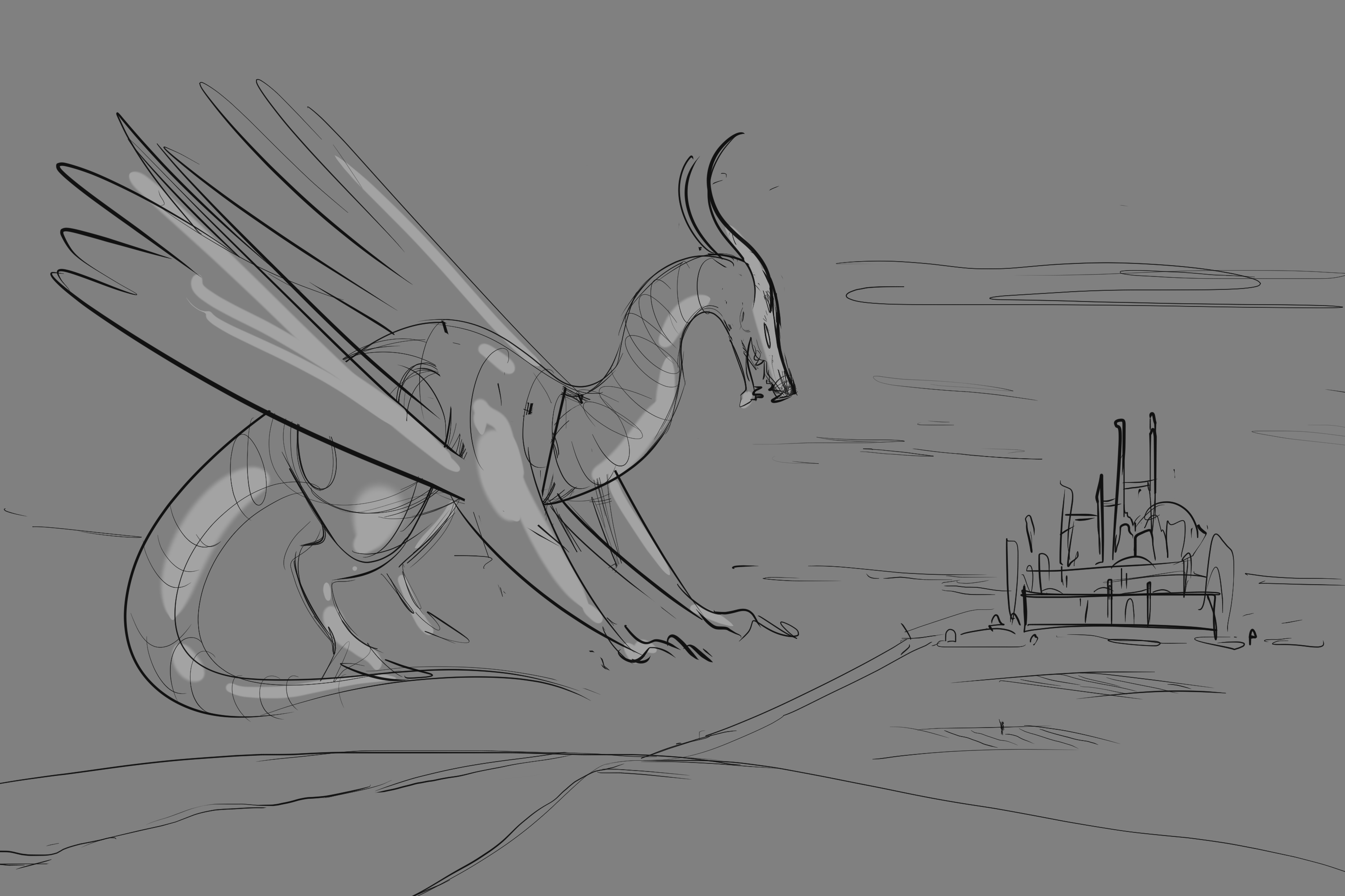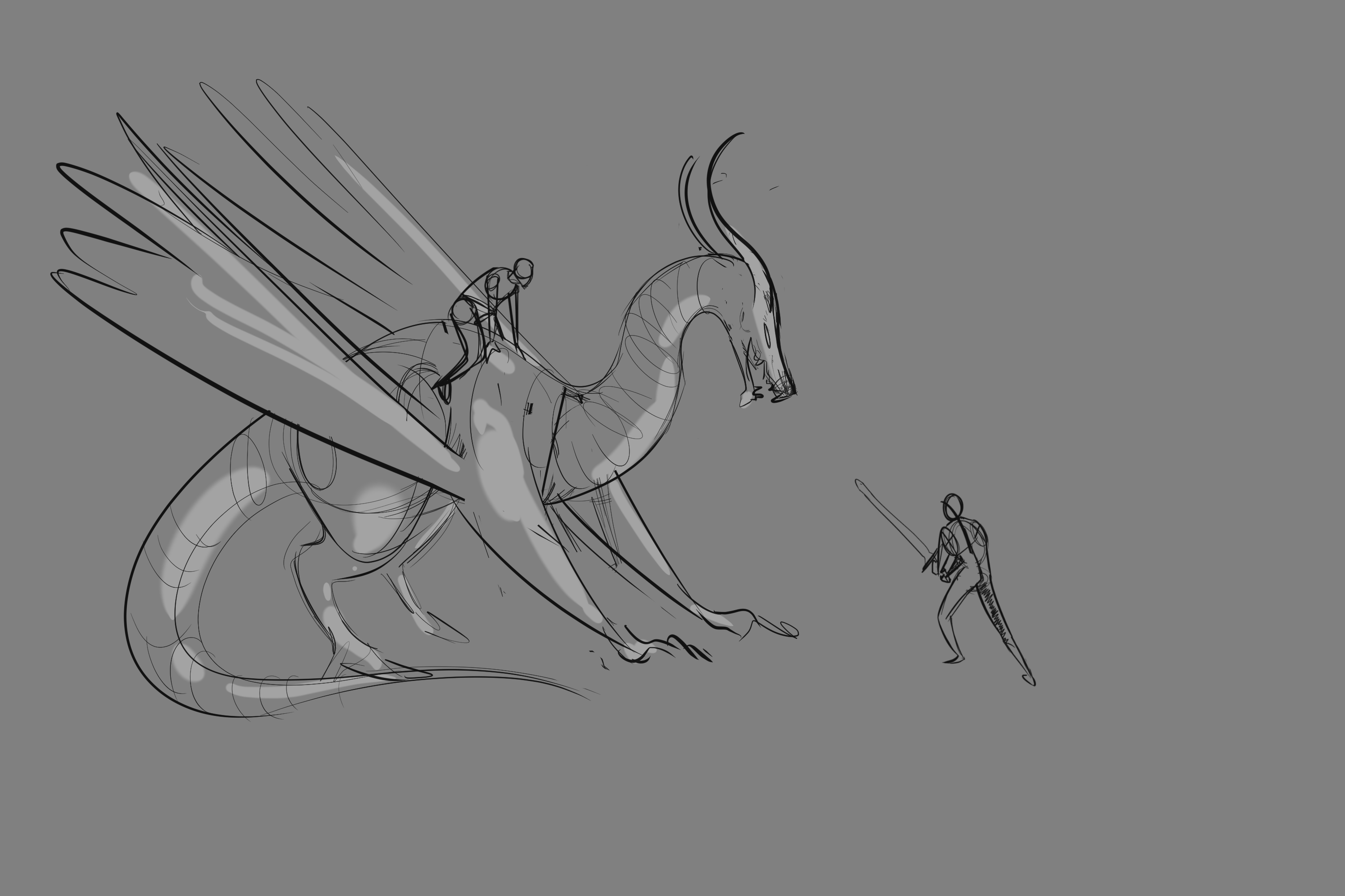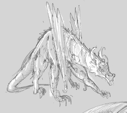 The second design, was actually the last dragon I drew for the exercise. You can see I’ve run out of steam here and I really feel like I lost the head and face. If you put your thumb over his face the rest of it isn’t so bad, but for characters and creatures your eye naturally goes to the head first, and if it doesn’t like what it sees… it won’t even give the rest of it a fair chance. So throw your thumb over that bad boy’s face and see for yourself!