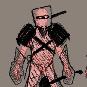 With the thumbnails all lined up, I threw together a rough sketch of what I’m initially digging. I’ve dropped helmets altogether. Honestly I think each piece of equipment deserves it’s own study, but of all the accessories the helm is the soul of the armor, so it needs an entirely dedicated post and set of research.