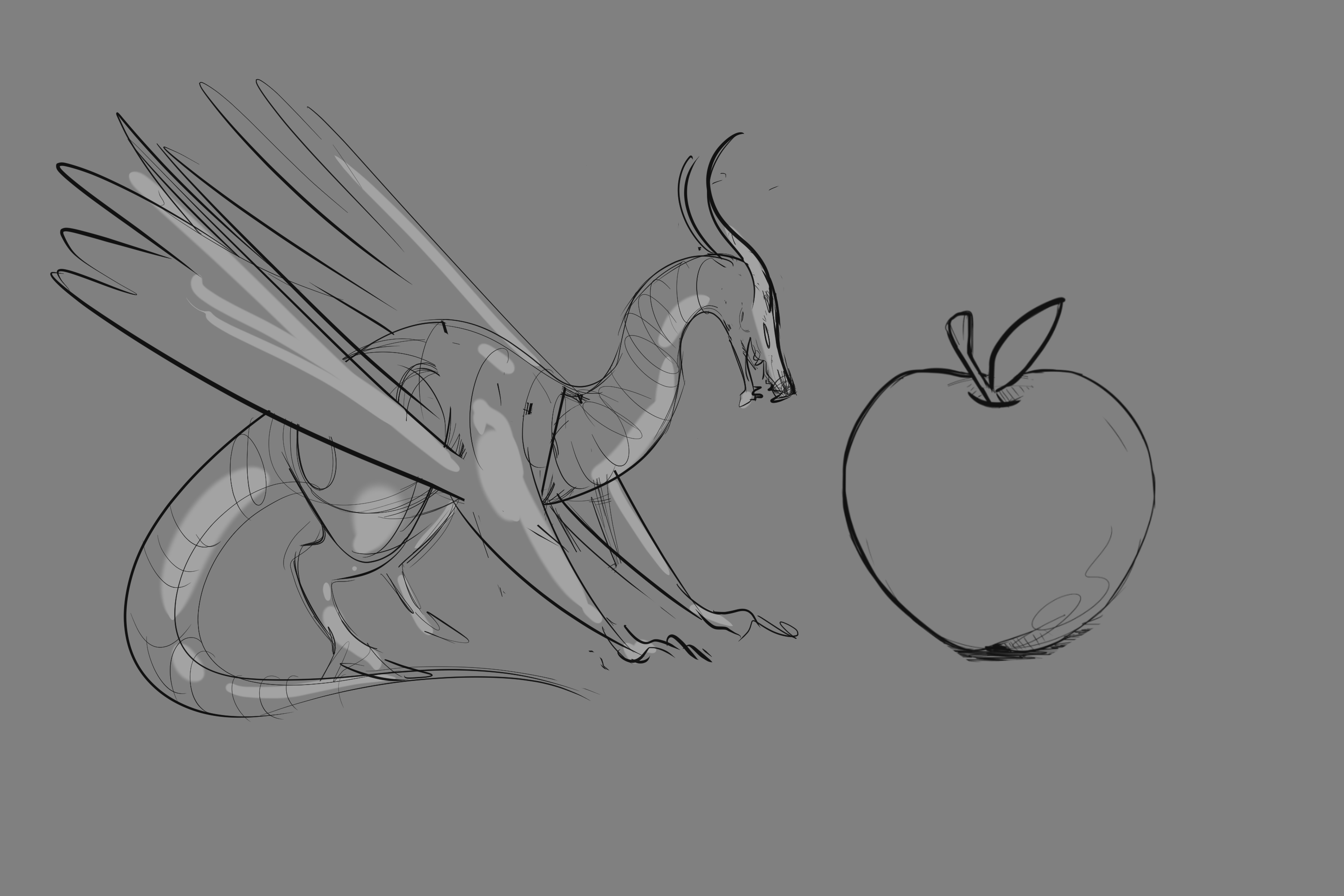 If the dragon is positioned near an apple they appear to be the same size and in the viewer’s mind the creature is small enough to perch up on their arm.