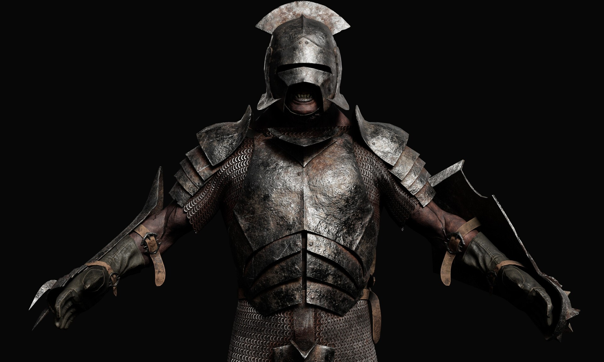 The shapes used to create them are composed of mainly large squares and hard edges. Even if you were to show no detail in the center of each image, they captured the sense of danger the character brings to the table. I’m a fan of the cartoon proportions in Blizzard Entertainment’s orcs so I’ve stolen their hilariously large shoulder pauldrons, tusks, and greatsword. Tolkien’s orcs are menacing, which is not the archetype I want my heroic D&D character to display, so I downplay the influences of the famed servants of Sauron. But I do enjoy their faces, so I try to incorporate some of their facial features and scarring into my own design.