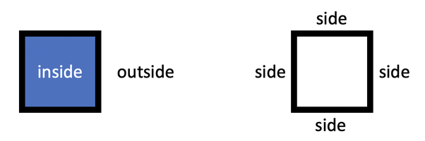 The teacher listened to my explanation but still maintained that the square had 4 sides, filled in or not. I wanted to continue the discussion, by pointing out that a line also had 4 sides, with a width on either end that couldn’t be ignored.